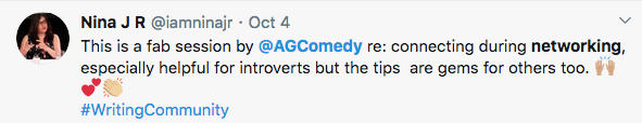 “It was so fun! Especially your deconstruction of groups at networking events, absolute gold.”